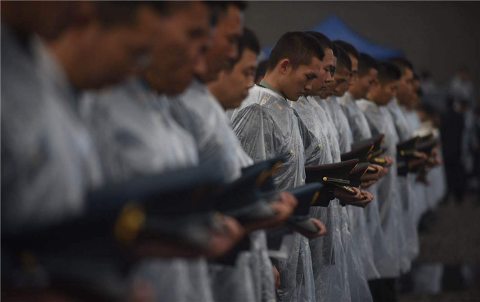 12月13日,武警战士在南京大屠杀死难者国家公祭仪式上向死难者献花。