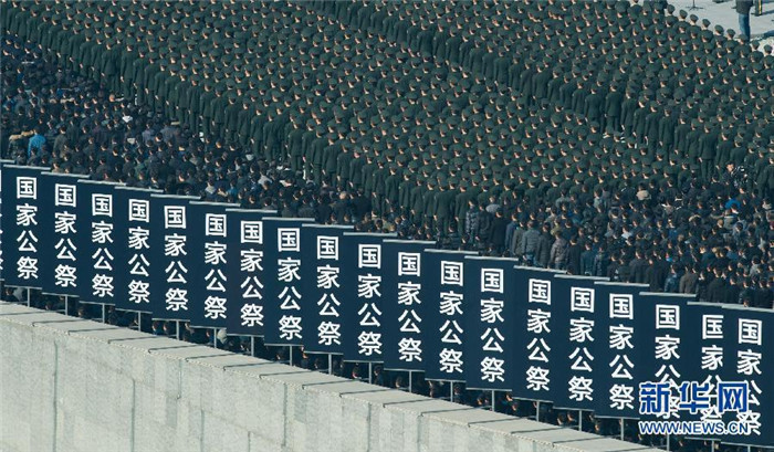 十时整,公祭仪式正式开始。雄壮的《义勇军进行曲》在广场上响起,全场高唱中华人民共和国国歌。