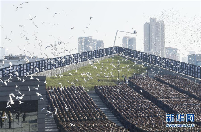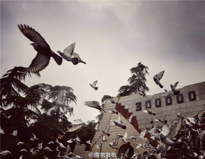 12月13日,3000羽和平鸽在公祭仪式现场振翅飞翔。