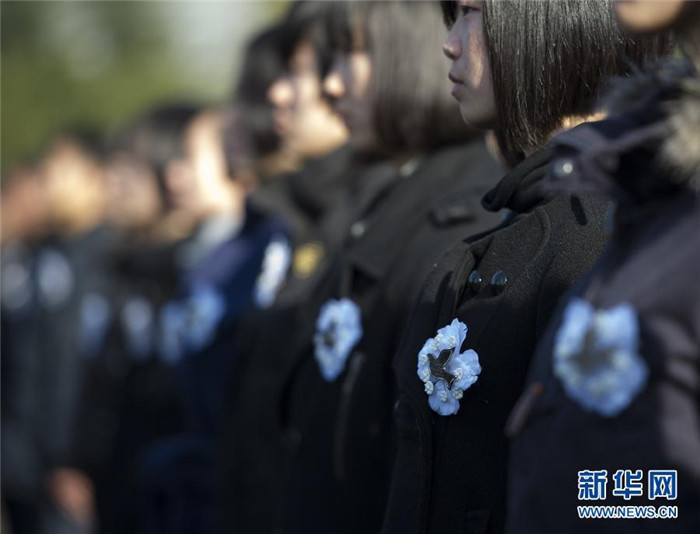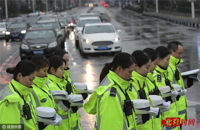 12月13日,各界代表胸前佩戴白花,静静肃立。
