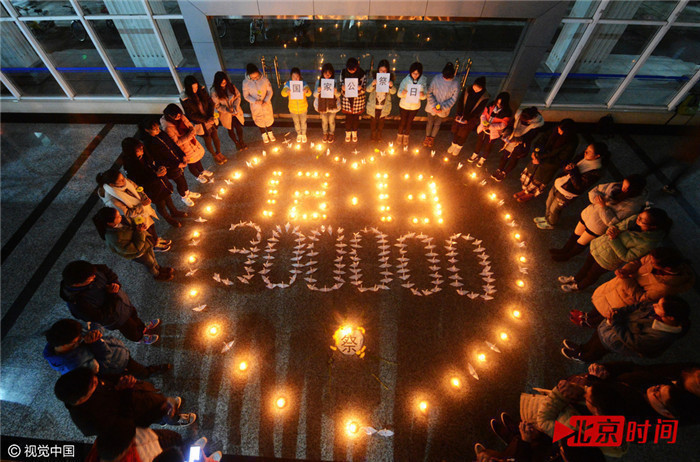 12月12日,江苏省扬州市,扬州大学化学化工学院的学生们在祭奠南京大屠杀死难者。